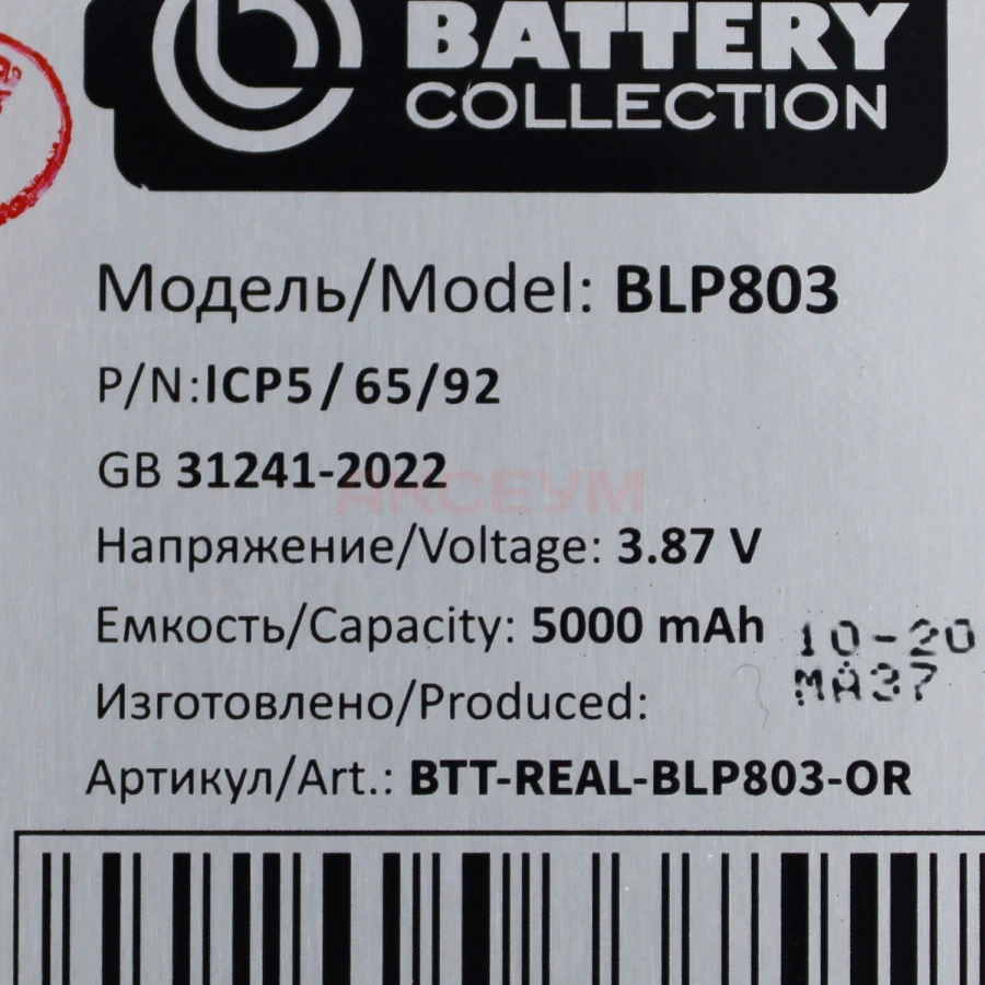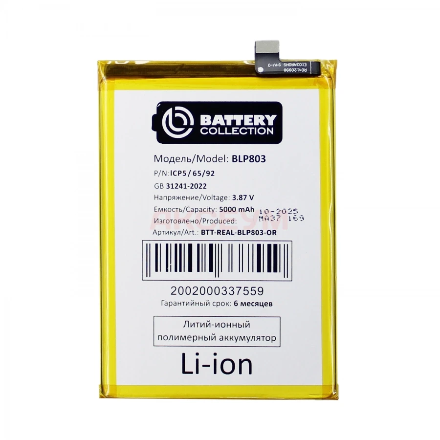Литий-ионный аккумулятор BLP803 имеет заявленную емкость в 5000 mAh и полностью совместим со смартфоном Realme 8 (RMX3085). Изготавливаются на различных заводах, но в отличие от недорогих аналогов проходят обязательную сертификацию. Заявленная и реальная емкость совпадает вплоть до единиц mAh. Если Вы не станете пренебрегать советами по эксплуатации, то эта батарейка запросто прослужит Вам как минимум два года или 700-900 циклов заряда/разряда прежде, чем емкость начнет снижаться. Если Вы планируете пользоваться своим смартфоном ещё несколько лет, то эта батарейка - Ваш выбор..